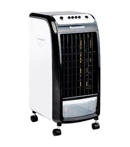 Klimator Ravanson KR-1011 75W 444m3/h to przenośne urządzenie chłodzące i nawilżające powietrze. Klimator o mocy 75W oraz wydajności chłodzenia na poziomie 444 m3/h sprawdzi się w pomieszczeniach o powierzchni do 15 m2. Klimator wyposażony jest w wydajny 4 litrowy zbiornik na wodę.