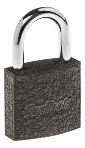 Kłodka marki TOP TOOLS. Solidne wykonanie zapewnia długotrwałe użytkowanie bez wzglęgu na warunki pogodowe. Do zestawu dołączone są 3 kluczyki