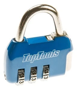Kłódka szyfrowa do bagażu Top Tools (nr ref. 90U218) o szerokości korpusu 35 mm. Zabezpieczenie przed otwarciem stanowi 3-cyfrowy kod dajacy 1000 kombinacji.