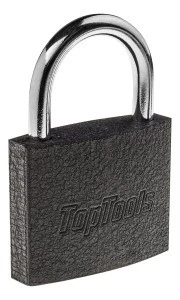 Kłódka marki Top Tools . Solidne wykonanie zapewnia długotrwałe użytkowanie bez względu na warunki pogodowe. Do zestawu dołączone są 2 kluczyki.