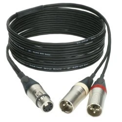 Najwyższej jakości kabel mikrofonowy rozdzielający gniazdo XLR 5p na 2 wtyki XLR 3p. Kabel służy do łączenia mikrofonu STEREO z konsolą mikserską lub przedwzmacniaczem (wej. 2x MONO). Został stworzony z myślą o użytkownikach poszukujących najwyższej jakości dźwięku. Jest doskonale ekranowany dzięki czemu zapewnia ochronę przed wpływami czynników zewnętrznych. Wykonany z wysokiej jakości miedzi. Posiada solidne złącza ze złoconymi stykami.