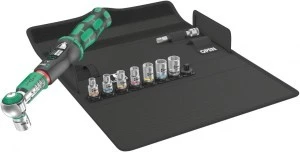Klucz dynamometryczny Safe-Torque A 1 z zabierakiem czworokątnym 1/4", zakres pomiarowy 2-12 Nm; do kontrolowanego dokręcania w prawo i w lewo; dokręcanie i luzowanie z lub bez momentu obrotowego, możliwość wyłączenia funkcji momentu obrotowego (funkcja Torque Lock); 72 zęby; niewielki kąt powrotu zapadki 5°; łatwe ustawianie i zabezpieczanie żądanej wartości momentu obrotowego; słyszalna i wyczuwalna sygnalizacja osiągnięcia zadanej wartości skali, mechanizm poślizgowy uruchamiany po osiągnięciu ustawionej wartości momentu obrotowego; ergonomiczna rękojeść 2-komponentowa; 8 kluczy nasadowych Zyklop, przedłużka Zyklop z tuleją szybkoobrotową, krótka