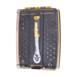 Zestaw Rebel z kluczem grzechotkowym i 80 bitami to niezastąpione narzędzie w każdym warsztacie, garażu czy domowym kąciku majsterkowicza. Wysokiej jakości wykonanie oraz szeroki wybór końcówek sprawiają, że zestaw doskonale sprawdza się zarówno przy prostych naprawach, jak i przy bardziej wymagających pracach montażowych czy serwisowych.