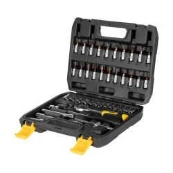 Gumowana rękojeść grzechotki, sprawia że narzędzie jest wyjątkowo wygodne w użyciu, nawet podczas długotrwałej pracy. Zestaw zawiera szeroką gamę nasadek, kluczy oraz przedłużek, co zapewnia wszechstronność w różnych zastosowaniach.