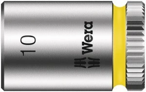 Klucz nasadowy firmy Wera (ISO 2725-część 3) do stosowania ręcznego oraz maszynowego. System oznaczenia kolorystycznego kluczy według rozmiaru "Take it easy" ułatwiający i przyspieszający odnajdywanie właściwego narzędzia. Poręczny kształt umożliwiający chwytanie nawet zabrudzonymi smarem rękami. Z rowkiem ustalacza kulkowego. Do śrub i nakrętek z łbem sześciokątnym. Ze stali chromowo-wanadowej, chromowany matowo.