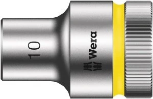 Klucz nasadowy firmy Wera (ISO 2725-część 3) do stosowania ręcznego oraz maszynowego. System oznaczenia kolorystycznego kluczy według rozmiaru "Take it easy" ułatwiający i przyspieszający odnajdywanie właściwego narzędzia. Poręczny kształt umożliwiający chwytanie nawet zabrudzonymi smarem rękami. Z rowkiem ustalacza kulkowego. Do śrub i nakrętek z łbem sześciokątnym. Ze stali chromowo-wanadowej, chromowany matowo.