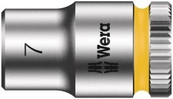 Klucz nasadowy firmy Wera (ISO 2725-część 3) do stosowania ręcznego oraz maszynowego. System oznaczenia kolorystycznego kluczy według rozmiaru "Take it easy" ułatwiający i przyspieszający odnajdywanie właściwego narzędzia. Poręczny kształt umożliwiający chwytanie nawet zabrudzonymi smarem rękami. Z rowkiem ustalacza kulkowego. Do śrub i nakrętek z łbem sześciokątnym. Ze stali chromowo-wanadowej, chromowany matowo.