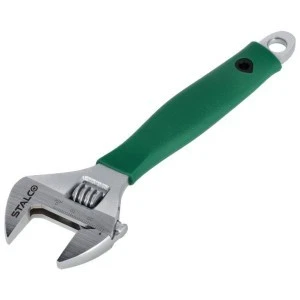Klucz nastawny to jedno z podstawowych narzędzi ręcznych. Przydaje się przy pracach instalacyjnych, montażach, naprawach, a także w wielu sytuacjach awaryjnych. Charakterystyczną cechą jest szczęka poruszana za pomocą mechanizmu ślimakowego. Taki mechanizm umożliwia zmianę rozstawu pomiędzy szczękami i pochwycenie śrub o różnych wymiarach. Klucz nastawny STALCO sprawdza się także przy odkręcaniu śrub ze startymi krawędziami. Narzędzie jest wykonane ze stali narzędziowej CrV. Uchwyt z miękkiego tworzywa umożliwia pewne i wygodne pochwycenie elementu w czasie pracy. W asortymencie STALCO znalazły się trzy klucze o różnych wymiarach. Mają inne długości trzpienia i różną wartość maksymalnego rozstawu pomiędzy szczękami.