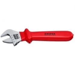 Regulowany klucz nastawny niemieckiego producenta KNIPEX. Dzięki izolowanym rękojeściom, zaprojektowanym specjalnie z myślą o pracy pod napięciem 1000 V, narzędzie jest niezbędnym elementem wyposażenia każdego elektryka.