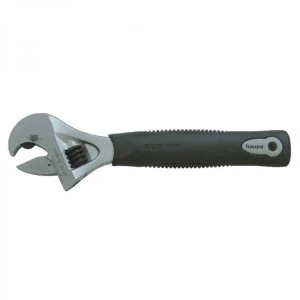 Klucz nastawny z funkcją grzechotki ze stali chrom – vanadium, szybsza i efektywniejsza praca, bez konieczności przekładania, stal kuta chromowana, DIN 3117, uchwyt z TPR, z wygrawerowaną skalą, otwór do zawieszenia z zabezpieczeniem przed kradzieżą.