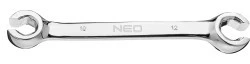 Klucz oczkowy półotwarty NEO (nr ref. 09-145) o wymiarze 10 x 12 mm. Wykorzystywany do odkręcania przewodów hydraulicznych, pneumatycznych, paliwowych. Odkuwany z wysokogatunkowej stali chromowo-wanadowej charakteryzuje się długoletnią wytrzymałością. Oczko odgięte pod kątem 15° ułatwia pracę w trudno dostępnych miejscach. Jakość narzędzia potwierdzona certyfikatem TUV i 25-letnią gwarancją producenta. Marka NEO spełnia oczekiwania profesjonalistów.
