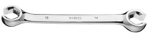 Klucz oczkowy półotwarty NEO (nr ref. 09-149) o wymiarze 13 x 14 mm. Wykorzystywany do odkręcania przewodów hydraulicznych, pneumatycznych, paliwowych. Odkuwany z wysokogatunkowej stali chromowo-wanadowej charakteryzuje się długoletnią wytrzymałością. Oczko odgięte pod kątem 15° ułatwia pracę w trudno dostępnych miejscach. Jakość narzędzia potwierdzona certyfikatem TUV i 25-letnią gwarancją producenta. Marka NEO spełnia oczekiwania profesjonalistów.