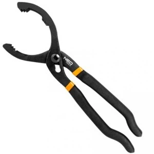 Klucz odgięty szczypcowy (20°) do filtrów oleju 63.5 - 116 mm 11-240, NEO TOOLS do profesjonalnych warsztatów i serwisów samochodowych oraz dla zaawansowanych amatorów. Klucz przeznaczony do sprawnego i prawidłowego montowania zewnętrznych filtrów olejowych z metalową obudową. Przeznaczony dla filtrów o średnicy od 63.5 do 116 mm