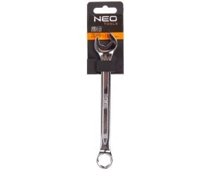 Klucz płasko-oczkowy z oczkiem sześciokątnym NEO (nr ref. 09-415, 15 mm). Część otwarta klucza posiada profilowane szczęki, które podczas pracy zapewniają aż cztery punkty styczne ze śrubą lub nakrętką sześciokątną. Lepsze dopasowanie części otwartej to mniejsze ryzyko ześlizgnięcia się narzędzia. Cztery punkty styczne to możliwość przyłożenia większej siły bez obawy o uszkodzenie nakrętki lub łba śruby (również, gdy odkręcany element jest częściowo zniszczony lub jest słabej jakości). Oczko sześciokątne zapewnia idealne dopasowanie do śruby lub nakrętki sześciokątnej (niweluje ryzyko uszkodzenia ich powierzchni) i umożliwia bezpieczne przyłożenie siły. Klucz dzięki swoim rozmiarom i niewielkiej grubości, pozwala na operowanie w przestrzeniach niedostępnych dla innych narzędzi. Wykonany zgodnie z normą DIN 3113, gwarantującą jakość, użyteczność i niezawodność narzędzia. Wysokogatunkowa stal chromowo-wanadowa zapewnia długoletnią wytrzymałość. Polerowana powłoka ułatwia czyszczenie. Niezawodność produktu potwierdza 25-letnia gwarancja. Marka NEO spełnia oczekiwania profesjonalistów.