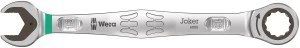 Wysokiej jakości metryczny klucz płasko-oczkowy z grzechotką firmy Wera: wszystko, co powinien zapewnić klucz. I jeszcze więcej. Szybciej, lepiej, bezpieczniej. Tak właśnie działa Joker. Nowa generacja kluczy płaskich z mechanizmem zapadkowym. Do śrub i nakrętek z łbem sześciokątnym. Funkcja przytrzymywania z metalową płytką zmniejszającą ryzyko zgubienia śruby lub nakrętki. Bardzo twarde ząbki wymiennej płytki pewnie chwytają śruby i nakrętki oraz zmniejszają ryzyko ześlizgiwania się klucza. Wbudowany ogranicznik zapobiega ześlizgiwaniu się klucza z łba śruby i umożliwia przenoszenie wysokich momentów obrotowych. Podwójny profil sześciokątny zapewnia doskonałe połączenie kształtowe między kluczem a śrubą bądź nakrętką, zmniejszając tym samym ryzyko ześlizgiwania. Przesuwanie klucza co 30° eliminuje czasochłonne obracanie klucza. Drobnozębny mechanizm zapadkowy z 80 zębami zapewnia maksymalną elastyczność nawet w wąskich przestrzeniach. Przenoszenie wysokich momentów obrotowych i podwyższona wytrzymałość na zginanie dzięki specjalnej geometrii. Wykonany z wysokiej jakości stali chromowo-molibdenowej z powłoką chromowo-niklową dla ochrony przed korozją. System wyszukiwania narzędzi Wera "Take it easy": system oznaczenia kolorystycznego kluczy według rozmiaru.