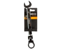 Klucz płasko-oczkowy z przegubem i grzechotką NEO. 72-zębowa grzechotka w kluczu oczkowym zapewnia szybką i precyzyjną pracę. Zastosowanie przegubu zwiększa funkcjonalność klucza. Wysokogatunkowa stal chromowo-wanadowa gwarantuje długoletnią wytrzymałość. Jakość narzędzia potwierdzona certyfikatem TUV i 25-letnią gwarancją producenta. Marka NEO spełnia oczekiwania profesjonalistów.