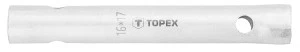 Klucz rurowy TOPEX (nr ref. 35D935) z nasadkami sześciokątnymi 16 x 17 mm. Jego napędem może być pokrętło przełożone przez otwory znajdujące się w korpusie. Sześciokątny przekrój końcówek sprawia, że możliwe jest kręcenie kluczem rurowym poprzez klucz płaski. Marka TOPEX skierowana jest do majsterkowiczów.