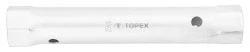 Klucz rurowy TOPEX (nr ref. 35D940) z nasadkami sześciokątnymi 25 x 28 mm. Jego napędem może być pokrętło przełożone przez otwory znajdujące się w korpusie. Sześciokątny przekrój końcówek sprawia, że możliwe jest kręcenie kluczem rurowym poprzez klucz płaski. Marka TOPEX skierowana jest do majsterkowiczów.