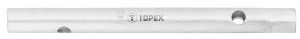 Klucz rurowy TOPEX (nr ref. 35D930) z nasadkami sześciokątnymi 6 x 7 mm. Jego napędem może być pokrętło przełożone przez otwory znajdujące się w korpusie. Sześciokątny przekrój końcówek sprawia, że możliwe jest kręcenie kluczem rurowym poprzez klucz płaski. Marka TOPEX skierowana jest do majsterkowiczów.