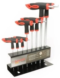 Zestaw kluczy imbusowych z uchwytem typu T wykonanych ze stali S2 zapewniającej długowieczność i wytrzymałość końcówek. Rękojeść wykonana z tworzywa sztucznego oraz gumy zapewnia pewny chwyt i najwyższy komfort pracy. Zestaw zawiera :