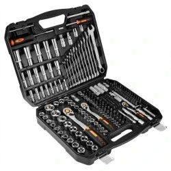 Zestaw kluczy nasadowych 1/2", 3/8" i 1/4" NEO (nr ref. 10-076) składa się z 219 elementów, wykonanych z wysokiej jakości stali chromowo-wanadowej.