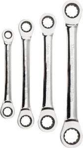 Zestaw kluczy oczkowych z grzechotką NEO (nr ref. 09-070) zawiera 4 klucze w popularnych rozmiarach (od 8 do 19 mm). Wysokogatunkowa stal chromowo-wanadowa gwarantuje długoletnią wytrzymałość. 72-zębowa grzechotka zapewnia szybką i precyzyjną pracę. Jakość narzędzia potwierdzona certyfikatem TUV i 25-letnią gwarancją producenta. Marka NEO spełnia oczekiwania profesjonalistów.