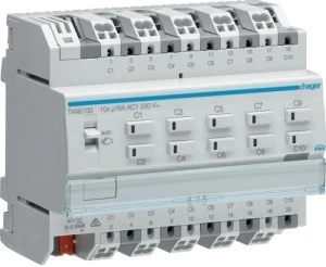 KNX e/s Sterownik załączający/żaluzjowy, obciążenie pojemnościowe 16 A, 10‑/5‑krotny TXA610D