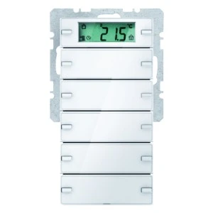KNX Przycisk 5‑krotny z regulatorem temperatury i wyświetlaczem śnieżnobiały aksamit Q.1 75665729