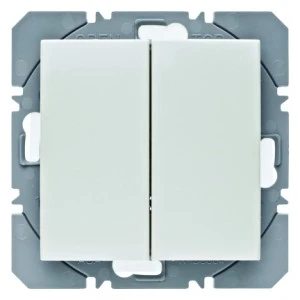 Dwuklawiszowy przycisk radiowy przeznaczony do integracji z systemem KNX (KNX-RF) w instalacjach sterowania oświetleniem, żaluzjami i scenami; konstrukcja typu wkładka nadajnika ściennego do montażu podtynkowego w ścianach kartonowo?gipsowych.