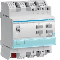 KNX s Sterownik załączający / żaluzjowy 16 A, 4‑/2‑kr, 4 mod TYA604D