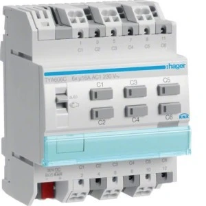 KNX s Sterownik załączający / żaluzjowy 16 A, 6‑/3‑kr, 4 mod TYA606C
