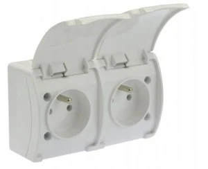 Gniazdo podwójne (2x2P+Z) VG-2, z uziemieniem, zaciski śrubowe, IP44 klapka biała