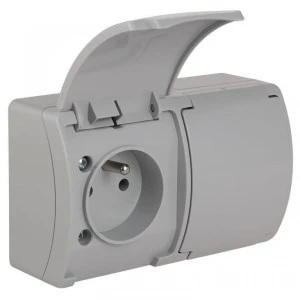 DELFINA Gniazdo hermetyczne podwójne z/u IP44 klapka szara GNH-2DZ/30/w