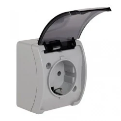MADERA Gniazdo hermetyczne pojedyncze z/u Schuko IP44 klapka biała GNH-1NS/00/w