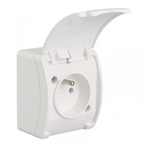 JUNIOR Gniazdo pojedyncze z/u (klapka dymna) biały IP54 GHE-1d