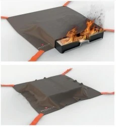 Natychmiast izoluje toksyczne gazy i dym oraz chroni ludność cywilną przed narażeniem na działanie czynników rakotwórczych. Litowy koc gaśniczy to najprostszy, najbezpieczniejszy i najskuteczniejszy sposób izolowania pożarów baterii litowych - takich jak pożary hulajnóg elektrycznych, rowerów elektrycznych i otwartych pożarów baterii.
