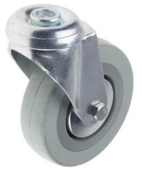 Nieoznaczana szara opona gumowa, lekka, polipropylenowa piasta. Kółka przemysłowe ogólnego przeznaczenia z nieoznakowaną szarą gumą. Dostępne jako mocowanie na płytce lub do montażu na trzonku i w zakresie udźwigu od 50 do 250 kg. Nadaje się do większości powierzchni podłogi. Kątownik stalowy Głowica wahliwa łożyska kulkowego Piasta polipropylenowa Dostępne wersje z hamulcem i bez hamulca