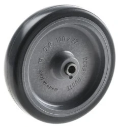 Udźwig może się różnić od podanych dla odpowiedniego wyprzedzenia sworznia zwrotnicy, jeżeli samonastawny element nadwozia narzuca określony współczynnik ograniczenia. Koło z gumą antystatyczną . Średnica 100 mm z gumową oponą Maksymalna oporność 10 kΩ Łożysko gładkiej tulei ma średnicę 6,0 mm