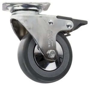 Szara opona gumowa, Antystatyczna - prostokątna TOP. Opony z gumy antystatycznej w kolorze szarym Chromowane widły Zastosowania o małym lub średnim obciążeniu Obrotowe kółka samonastawne z podwójną bieżnią kulkową w głowicy obrotowej