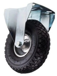 Odlewy opon pneumatycznych. Solidne kółka samonastawne z łożyskami wałeczkowymi zapewniające płynny ruch i odporność na wstrząsy Środek ze stali tłoczonej Opona gumowa Szeroki rozstaw kół sprawia, że nadają się one do delikatnych powierzchni