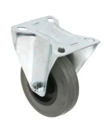 Nieoznaczana szara opona gumowa, lekka, polipropylenowa piasta. Kółka przemysłowe ogólnego przeznaczenia z nieoznakowaną szarą gumą. Dostępne jako mocowanie na płytce lub do montażu na trzonku i w zakresie udźwigu od 50 do 250 kg. Nadaje się do większości powierzchni podłogi. Kątownik stalowy Głowica wahliwa łożyska kulkowego Piasta polipropylenowa Dostępne wersje z hamulcem i bez hamulca