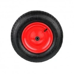 Koło do wózka 4.00-8 2PR czerwona felga ⭐⭐⭐⭐⭐ ➡️ Koło do taczki o maksymalnym obciążeniu do 210 kg. Wytrzymała metalowa felga, malowana proszkowo zapewnia podwyższoną stabilność. Całość wykonana z wysokiej jakości materiałów. Brak ośki w zestawie. ➡️ Pasuje do wielu rodzajów taczek/wózków i innych: ✔️ Dużą zaletą jest uniwersalność koła, która pozwala na dopasowanie go do większości wózków, taczek, ✔️ doskonale sprawdza się w gospodarstwie domowym oraz wszelkiego rodzajów pracach budowlanych. ➡️ Koło do wózka z widocznym na zdjęciu bieżnikiem, idealnie nada się do nawierzchni takich jak: ✔️ wysoka trawa, ✔️ droga szutrowa, ✔️ kamienie, ✔️ błoto, ✔️ gruz, ➡️ Zastosowanie: ✔️ Ogród ✔️ budownictwo ✔️ prace przydomowe, ➡️ Dane techniczne: zastosowanie taczki/wózki średnica zewnętrzna opony 390 mm szerokość opony 95 mm średnica wewnętrzna opony 220 mm otwór na ośkę 12 mm szerokość piasty 97 mm łożyskowanie kulkowe podwójne ilość płócien w oponie 2 materiał wykonania guma, felga- stalowa maksymalne obciążenie 210 kg ciśnienie maksymalne 2,1 bar / 30 psi