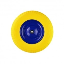 zastosowanie taczki/wózki średnica zewnętrzna koła 390 mm szerokość opony 95 mm średnica wewnętrzna koła 220 mm otwór na ośkę 12 mm szerokość piasty 97 mm łożyskowanie kulkowe podwójne materiał wykonania tworzywo poliuretanowe, felga- stalowa