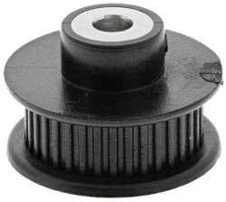 Plastikowe koło pasowe z wkładką. Gama plastikowych rolek RS przeznaczonych do stosowania z paskami miniaturowymi MXL. Mosiężne lub aluminiowe wkładki