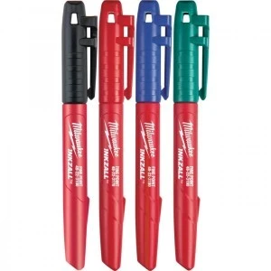 Zestaw kolorowych markerów 48223106 firmy Milwaukee to komplet czterech trwałych markerów w kolorach czarnym, czerwonym, niebieskim i zielonym.