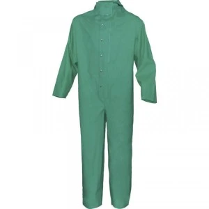 Kombinezon ochronny typu 3, chroniący przed ciekłymi chemikaliami. Rękawy raglanowe. Szwy zgrzewane. Zapinanie na zamek błyskawiczny pod listwą na zatrzaski i rzep. Kaptur stały z gumką. Gumka w nadgarstkach i w kostkach, kolor zielony rozmiar XL, zarkes rozmiarów: S DO 3XL