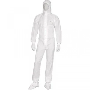 Kombinezon z kapturem obszytym gumką. Włóknina Deltatek® 6000. Zapinanie na zamek błyskawiczny z podwójnym kursorem pod listwą. Gumka ściągająca w kostkach, w talii oraz wokół głowy. W nadgarstkach ściągacz. Próżniowe opakowanie jednostkowe, kolor biały rozmiar XXL, zarkes rozmiarów: M DO XXL