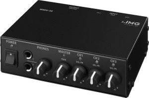 Kompaktowy 3-kanałowy mikser liniowy stereo · Regulatory wzmocnienia dla każdego kanału wejściowego · 1 wyjście stereo master, regulowane · Wejścia i wyjście na gniazdach RCA · 2 wyjścia słuchawkowe stereo, wspólna regulacja · Diodowy wskaźnik poziomu i szczytu dla wejść i wyjścia Kanały wejściowe 3 Ilość wejść stereo 3 Wejście liniowe 40mV, 3 x RCA L/R Wyjście master 4V, 1 x RCA L/R Słuchawki 2 x 10mW/2 x 32Ω, 2 x 6.3mm Pasmo przenoszenia 5-30 000 Hz THD 66 dB Zasilanie z doł. zasilacza Dopuszcz. temp. otoczenia 0-40 °C Wymiary 147 x 50 x 119mm Szerokość 147 mm Wysokość 50 mm Głębokość 119 mm Waga 693 g Wymiary opakowania (S x W x D) 0.13 x 0.065 x 0.23 m Waga brutto 0.85 kg Waga netto 0.693 kg