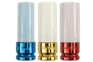 Nasadki posiadają chromowane wykończenie w 3 kolorach, które ułatwia rozróżnienie rozmiarów. Ultra cienkie ścianki umożliwiają odkręcanie śrub w ciasnych gniazdach felg aluminiowych.