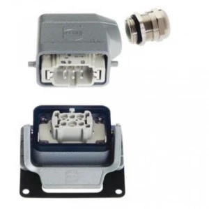 Kompletne złącze Han-Kit-6B - 6pinów+PE zestaw zawiera obudowe wkłąd złącza o zaciskach śrubowych i dławice {10330060000}